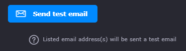Once configured correctly, customers can send a test email, this will be sent to all the recipients specified in the last step, by pressing the send test email .