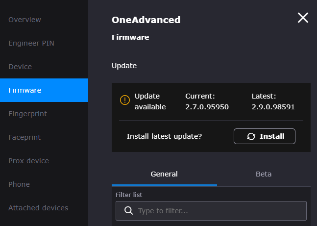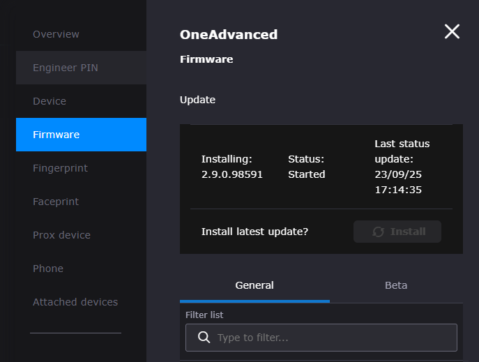 Firmware settings is a tab where you can upgrade the Firmware of the Terminal. Firmware is the software installed on the Terminal, like the operating system of your computer or mobile device.