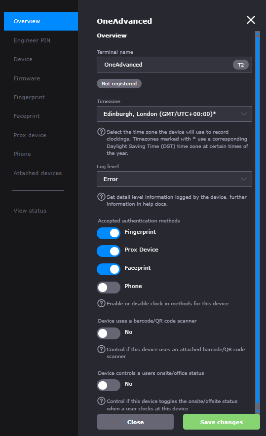 - Fingerprint allows you to alter how Users can clock using their fingerprint.